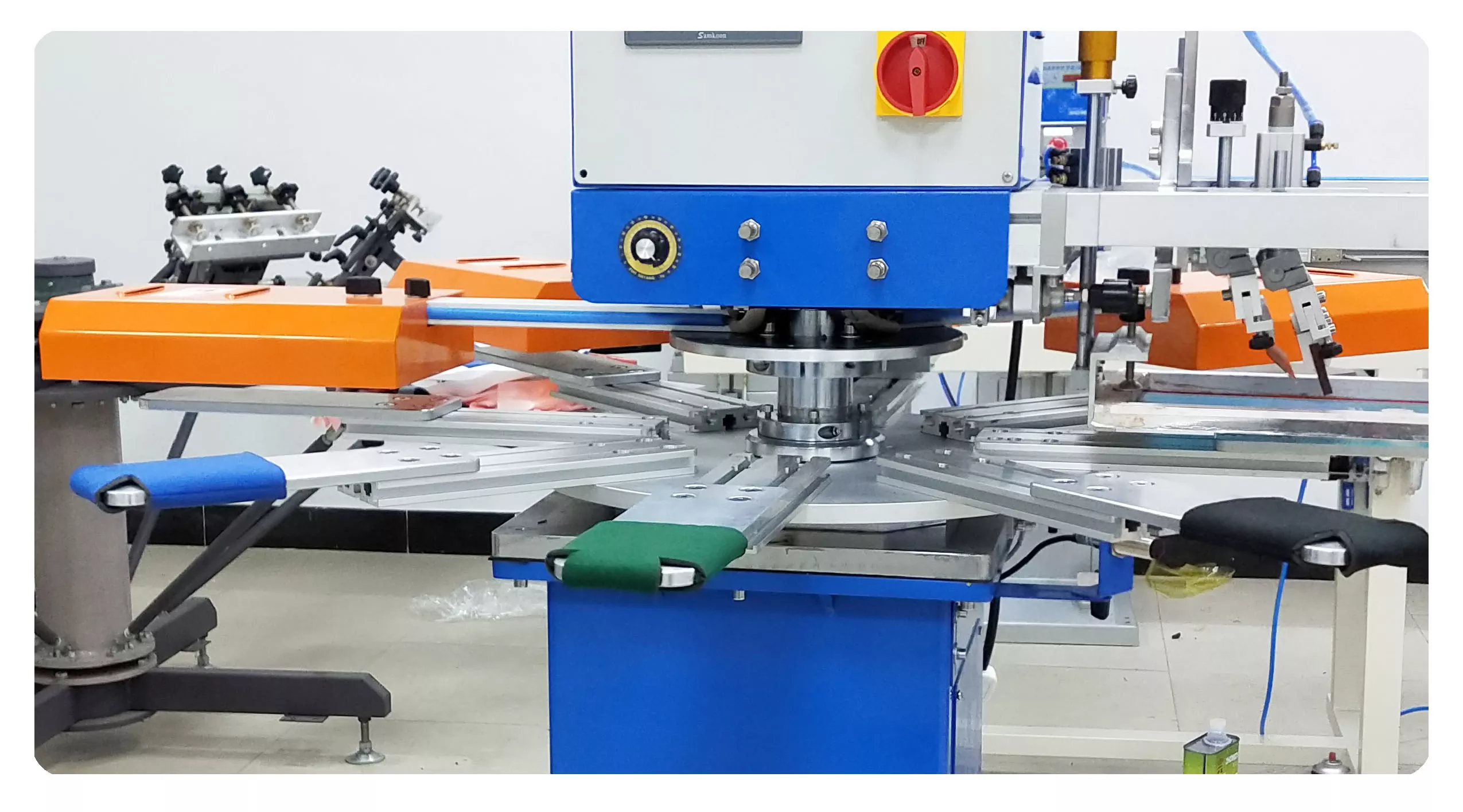 5. La table de travail rotative comprend huit stations : une pour le chargement, une pour l'impression, deux pour le séchage et une pour le déchargement, permettant à cinq stations de travailler en même temps.