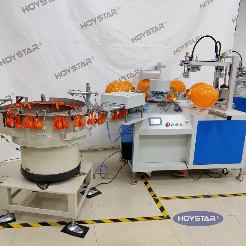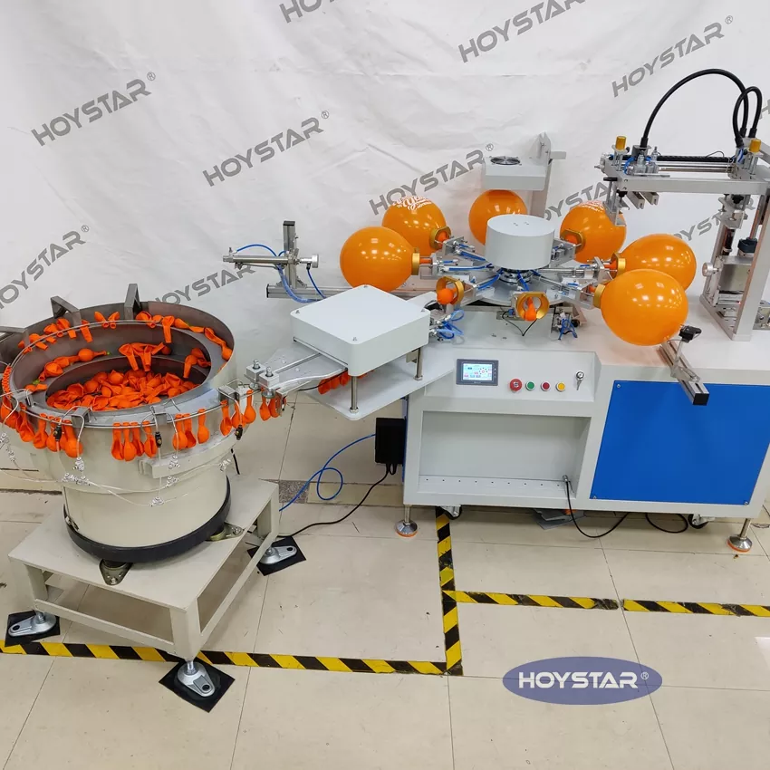 En tant que fabricant et fournisseur professionnel, machine de sérigraphie de ballons 1 couleur entièrement automatique HOYSTAR. est conçu pour être imprimé sur des ballons en latex. Équipé d'une table de travail rotative, chargement automatique, soufflage automatique, rotation automatique, séchage automatique, fonctions de déchargement automatique. Contrôle par écran tactile PLC, interface conviviale pour un fonctionnement sûr et intuitif. La machine allie rapidité, précision et simplicité d’utilisation.