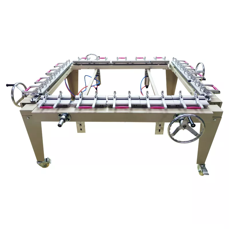 La machine d'étirement du cadre d'écran est utilisée pour étirer uniformément et étroitement l'écran sur un cadre en aluminium ou en bois, garantissant une tension constante de l'écran - c'est un facteur clé pour obtenir une impression d'encre uniforme pendant le processus d'impression.