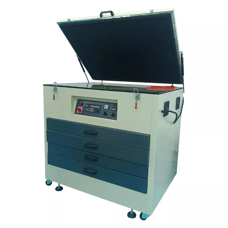 La machine d'exposition aux UV est un équipement clé pour transférer des motifs sur le cadre de l'écran. Ils utilisent un rayonnement ultraviolet pour durcir l'émulsion photosensible sur le cadre de l'écran et créent des modèles précis basés sur les dessins de conception.